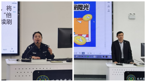 王警官用详实的数据说明了当前电信网络诈骗犯罪呈发案势头迅猛、受害群体增多和财产损失急剧上升的不利形势,同时诈骗作案工具、诈骗手法不断涌现,使打击难度日益增加。王警官结合近期发生的实际案例,生动讲解,重点介绍了同学们经常遇到的贷款类诈骗、网络刷单、冒充电商物流诈骗、杀猪盘、冒充公检法诈骗、涉黄陷阱敲诈、冒充好友借钱、网络招嫖诈骗等常见诈骗类型及手法,提醒同学们务必牢记“十个凡是”和“三不一多”(未知链接不点击、陌生来电不轻信、个人信息不透露和转账汇款多核实)原则,擦亮“识骗”慧眼,增强防范意识,提高鉴别能力,确保财务安全。