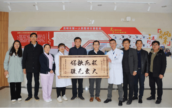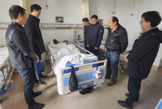 院领导及老师一行,前往昆明市第一人民医院北院区(甘美医院)向医院表达谢意,并看望慰问正在住院治疗的我校2022级给排水专业杨春灿同学。