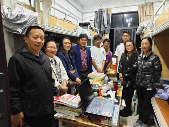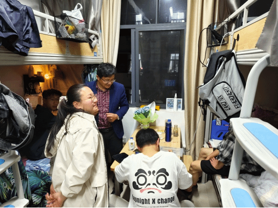 党委书记王国贤带领晚值班的班主任辅导员老师们走访检查2023级新生入住立志苑2栋和4栋宿舍,关心了解学生的学习生活情况。