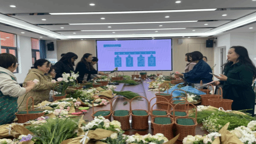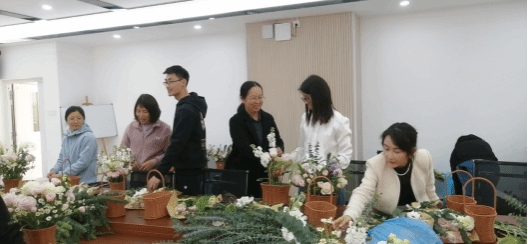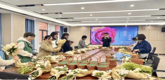 工会为女教师们举办了一场温馨有趣的插花活动。