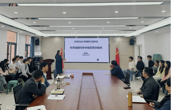 全体教师和研究生进行了警示教育培训。她强调学术诚信是学术研究的基石,是每一位科研工作者必须坚守的原则。韩副院长列举了近年来国内发生的三十余起学术不端事件,提醒全院教师和学生在科学研究、论文发表、项目申报和科研经费使用等方面要以此为鉴,坚决杜绝科研失信和学术不端行为。
