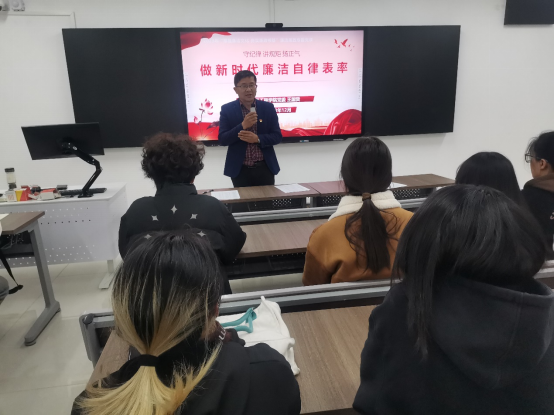 王书记以“守纪律、讲规矩、扬正气——做新时代廉洁自律表率”为主题,围绕廉洁纪律和做人做事,引导青年学生要树立正确的世界观、人生观、价值观,要胸怀一颗坦荡的正直的心;自觉守纪律、讲规矩,做廉洁自律表率;树立目标,扫除私心杂念,勤奋学习,享受充实大学时光。最后,王书记带领同学们齐唱《唱支山歌给党听》,表达对党的挚爱之情、感恩之心。党课在庄重愉快的气氛中结束。