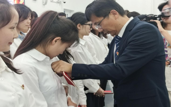 党委“关于接收张一等54名学生为中共预备党员的决定”。随后,全体新党员整齐列队,看球通体育