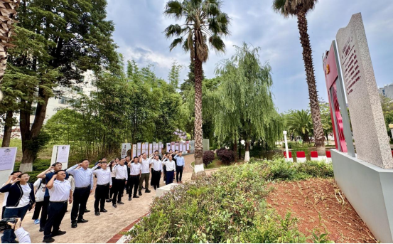 最后,与会人员一同参观了云南农业大学廉洁文化园,学校纪委副书记兼纪委办主任杨锐英为大家做了生动讲解,大家认真聆听了关于“廉”字的演变历程、六廉以及廉吏背后的故事、少数民族廉洁文化、耕读文化等内容,共同上了一堂主题鲜明、生动具体的廉洁文化教育课。参观结束后,与会党员面向党旗,庄严地重温了入党誓词。