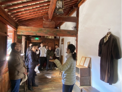 随后,大家参观了闻一多、朱自清故居,这是一座典型的昆明“一颗印”民居建筑,承载着闻一多、朱自清等西南联大先贤们在昆期间的教学、研究、生活历史。党员们认真聆听讲解、驻足仔细观看陈列物品、重温和追忆西南联大时期的历史故事,感受了闻一多先生在战火纷飞、艰难困苦环境下,依旧取得非凡的文学艺术成就、坚持“真我”、勇于斗争的精神。