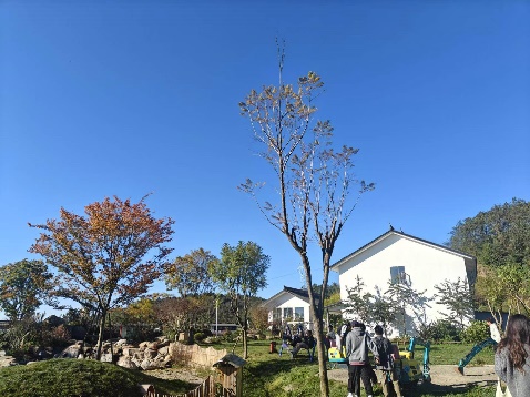 上午,学生们首站抵达昆明市西山区的团结鑫苹果庄园。在这里,同学们不仅明确了休闲农庄概念课程设计的方向和目标,还深入了解了庄园的当前状况,探索了其内在潜力和可能性。团结鑫苹果庄园基地原是昆明城郊团结磷矿的老采空区,因矿产开采变得千沟万壑,矿洞分布在山坡上,随着矿采区被废弃,当地生态系统被进一步破坏。2017年遍野荒山,入场修复,一年复绿570余亩,团结鑫苹果庄园通过引入文化项目、开发高端康养、发展特色研学等措施,实现了一、二、三产的有机融合。通过对苹果庄园规划布局和运行模式的细致考察,学生们获得了对休闲农庄规划的深刻认识,为未来的设计工作打下了坚实的基础。