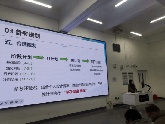 会上,海天考研高级巡讲师虎怡静从为什么要考研、院校选择、考研注意事项等方面进行了深入剖析,为同学们提供了宝贵的建议和指导。
