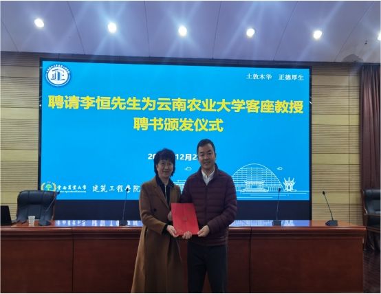 讲座伊始,学校徐华副书记代表学校为李恒教授颁发聘书,正式聘请李恒为云南农业大学客座教授,对看球通体育
