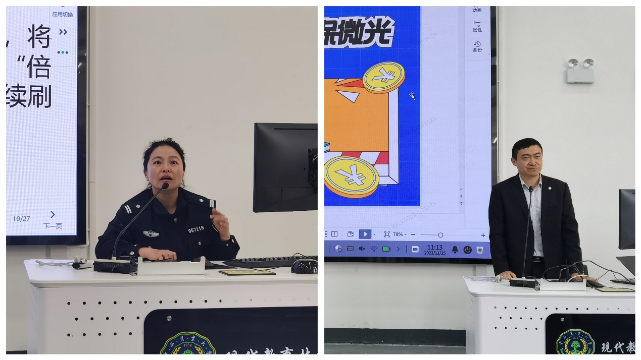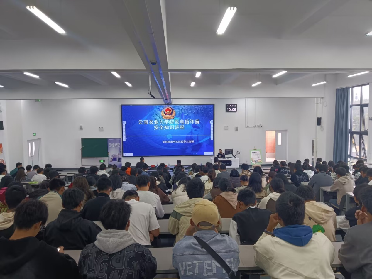 王警官用详实的数据说明了当前电信网络诈骗犯罪呈发案势头迅猛、受害群体增多和财产损失急剧上升的不利形势,同时诈骗作案工具、诈骗手法不断涌现,使打击难度日益增加。王警官结合近期发生的实际案例,生动讲解,重点介绍了同学们经常遇到的贷款类诈骗、网络刷单、冒充电商物流、杀猪盘、冒充公检法诈骗、裸聊陷阱敲诈、冒充好友借钱、网络招嫖诈骗等常见诈骗类型及手法,提醒同学们务必牢记“十个凡是”和“三不一多”(未知链接不点击、陌生来电不轻信、个人信息不透露和转账汇款多核实)原则,擦亮“识骗”慧眼,增强防范意识,提高鉴别能力,确保财务安全。