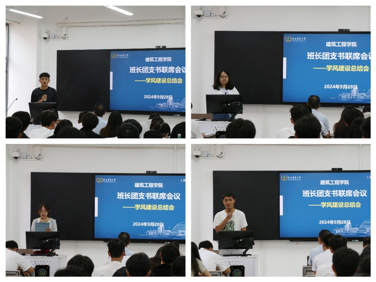 上学期的学风建设活动进行了总结和分析,并邀请部分在学风建设方面尤其是三率的提升方面取得成效的班级代表进行了经验交流分享。上学期各班针对学风班风进行了全员动员部署,采取了一系列行之有效的举措和办法,努力将学风建设落细落实,形成了很多可借鉴的典型经验做法,成效明显。如通过组建单词打卡、考研小组、英语四六级互助小组、一对一学习帮扶小组等,充分发挥团队优势提高学习效率;通过组建考研宿舍,设立晨读晚修自习室等方式,营造浓厚的学习氛围,培养同学们学习的自觉性和主动性;通过朋辈辅导,考研、考公、高质量就业的优秀学长学姐进行经验交流分享,为同学们树立榜样,增强信心,指明努力方向。
