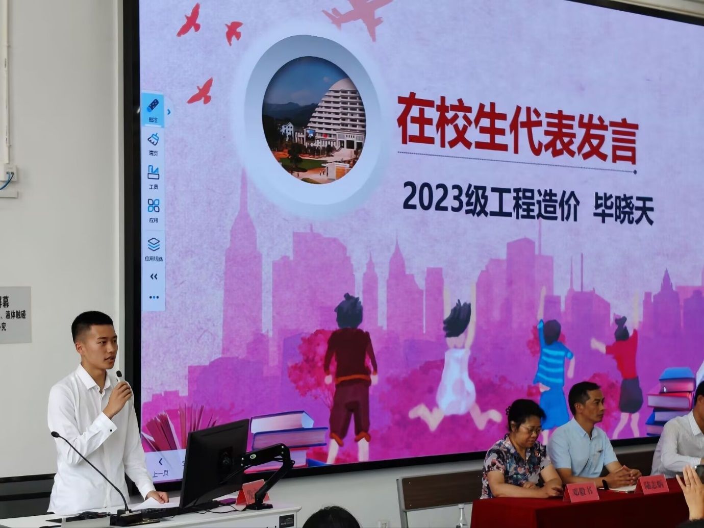在校生代表、2023级工程造价专业毕晓天同学结合自身经历,建议新生主动学习、合理规划,积极参与课外活动,在实践中探索成长。