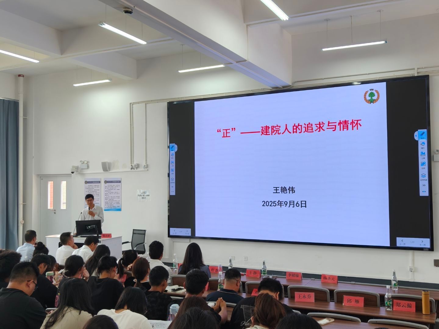 院长王艳伟教授以《正——建院人的追求与情怀》为主题,为新生讲授“开学第一课”。他从办学历史、特色优势、发展愿景等介绍了看球通体育