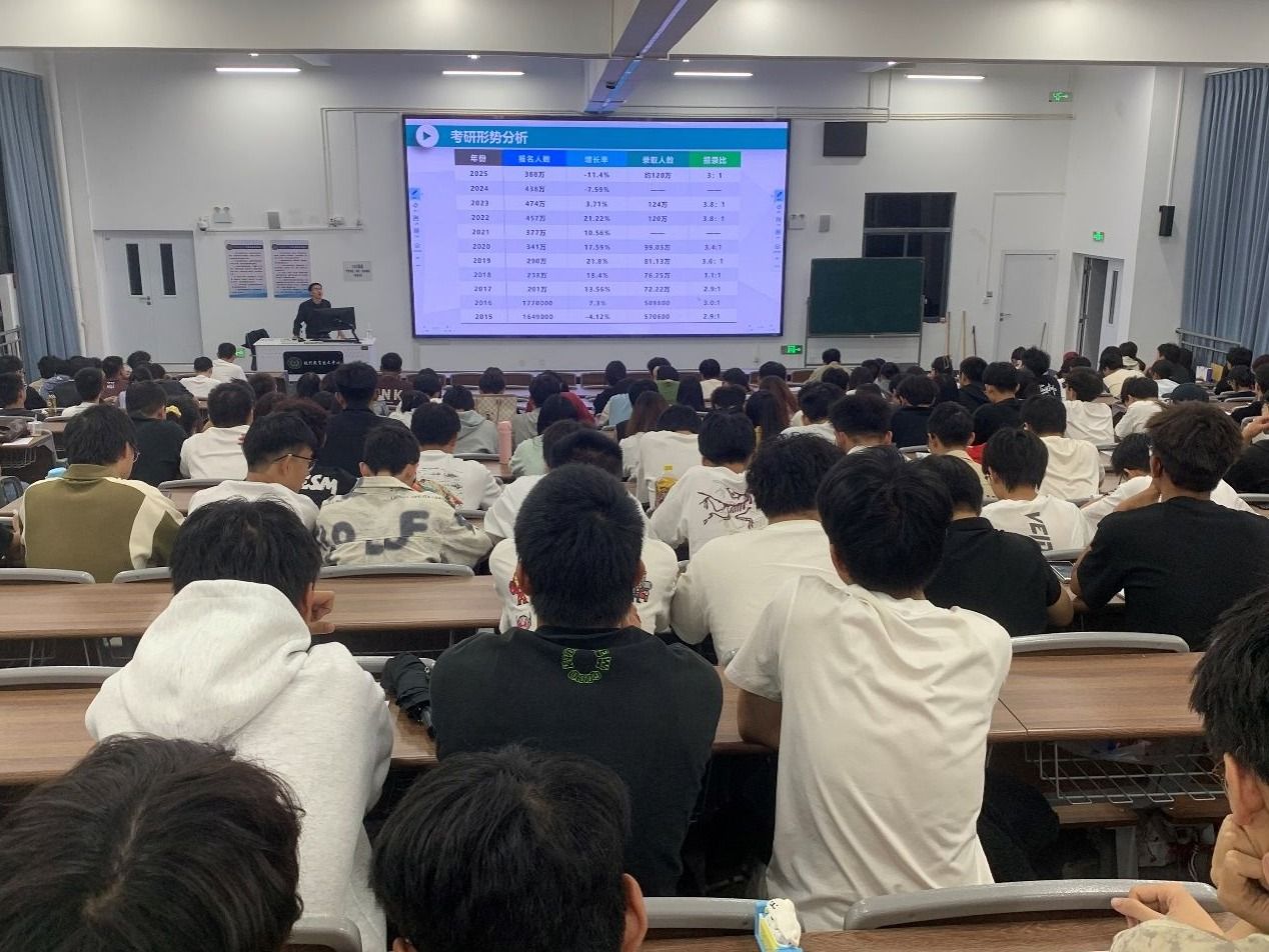 谈及考研形势,张老师借助详实数据,涵盖报考人数、分数线、录取比例等,为同学们勾勒出清晰的考研形势图。他强调,尽管考研竞争逐年激烈,但上岸并非遥不可及,增强了同学们的考研信心。