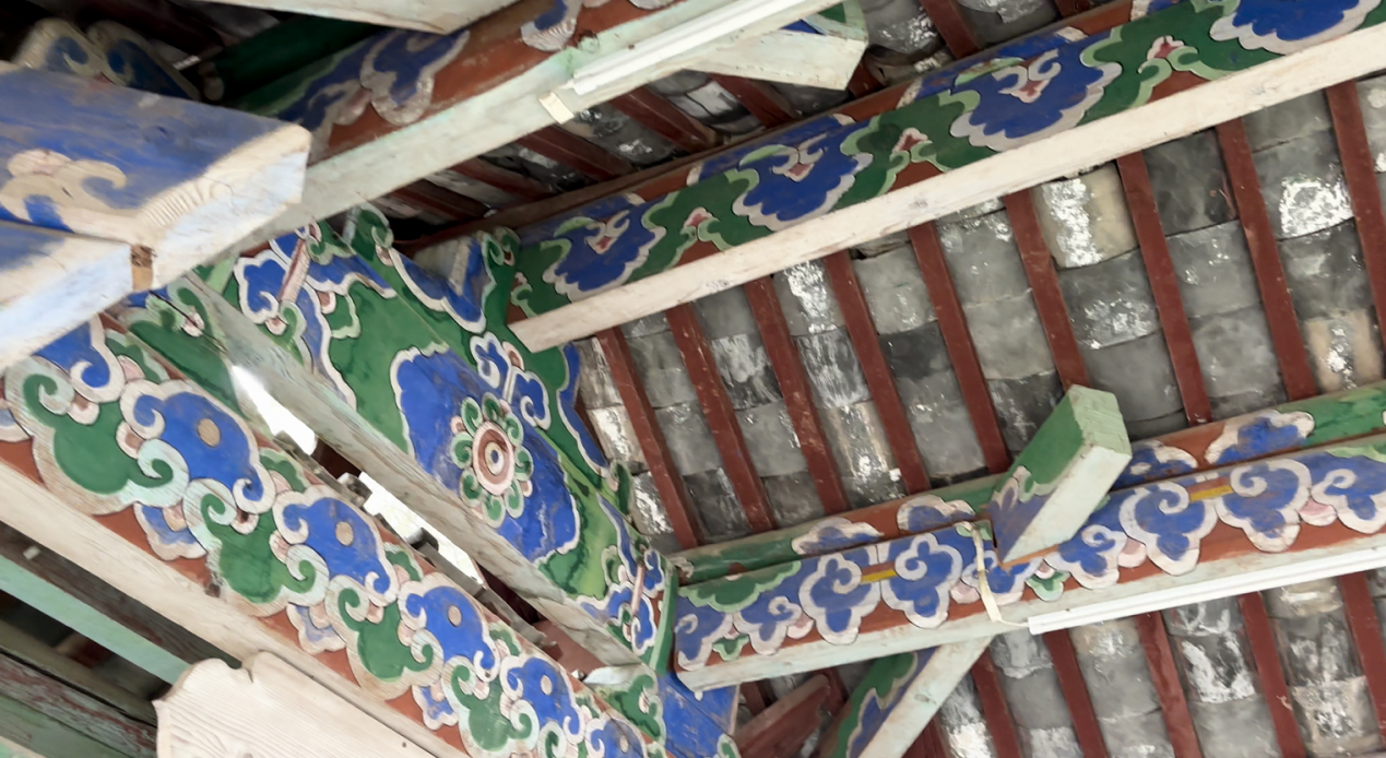 实践团队来到白沙古城,首先探访了位于白沙古镇西北郊的福国寺。丽江市福国寺静处白沙古镇一隅,青瓦木梁间,彩画成为古刹最鲜活的印记。梁柱与斗拱上的纹饰历经风霜,却依然光彩照人,堪称纳西佛画艺术的缩影。队员们走进寺庙,轻轻抚摸着那些古老的彩画,感受着岁月留下的痕迹。这些彩画不仅展现了纳西族佛教艺术的独特魅力,也反映了当时社会的宗教信仰和文化风貌。