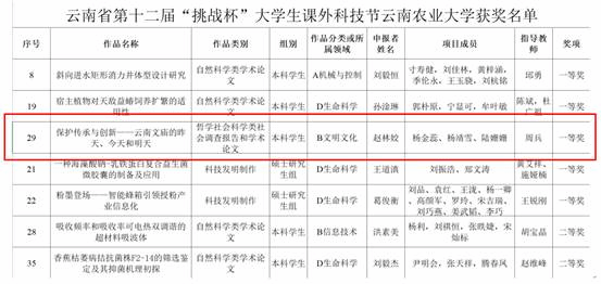 由周兵教授指导,赵林姣主持,杨金蕊、杨靖雪、陆珊珊同学参与的《保护传承与创新——云南文庙的昨天今天和明天》作品获得省级一等奖。