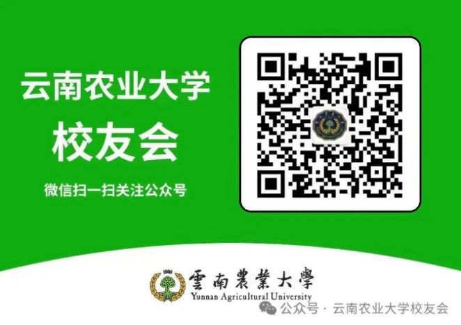运用学校校友会校友信息管理系统,完成校友注册和校友卡申领。搜索或扫码关注“云南农业大学校友会”公众号,点击“校友服务-校友卡”进入程序后进行注册、申领校友卡(专科及之前校友建议用“人工认证”方式),校友信息收集仅用于校友联络和统计,学校将严格保密相关信息,请各位校友放心填写。